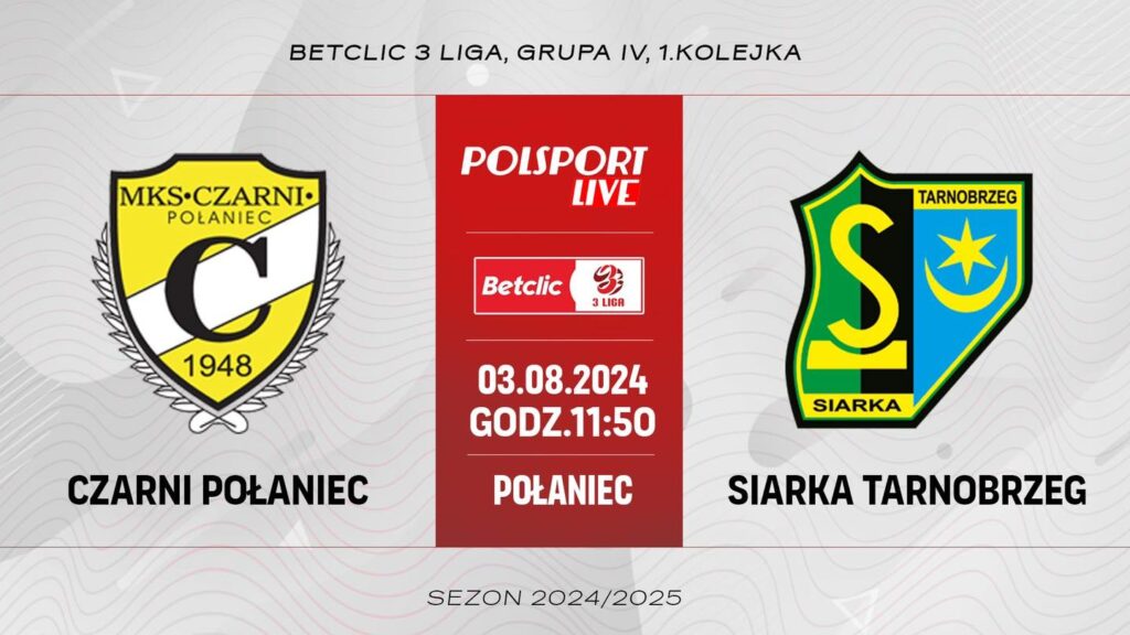 Już jutro o godzinie 12:00 zostanie w Połańcu rozegrany mecz ligowy w ramach 1 kolejki betclic 3 ligi grupy – IV. Miejscowy zespół Czarnych Połaniec będzie rywalizował z Siarką Tarnobrzeg. W związku że rozgrywki na poziomie makroregionu zyskały sponsora tytularnego to na koszulkach meczowych oraz na stadionie oraz w przestrzeni medialnej będą wykorzystywane logotypy rozgrywek od firmy- Betclic.