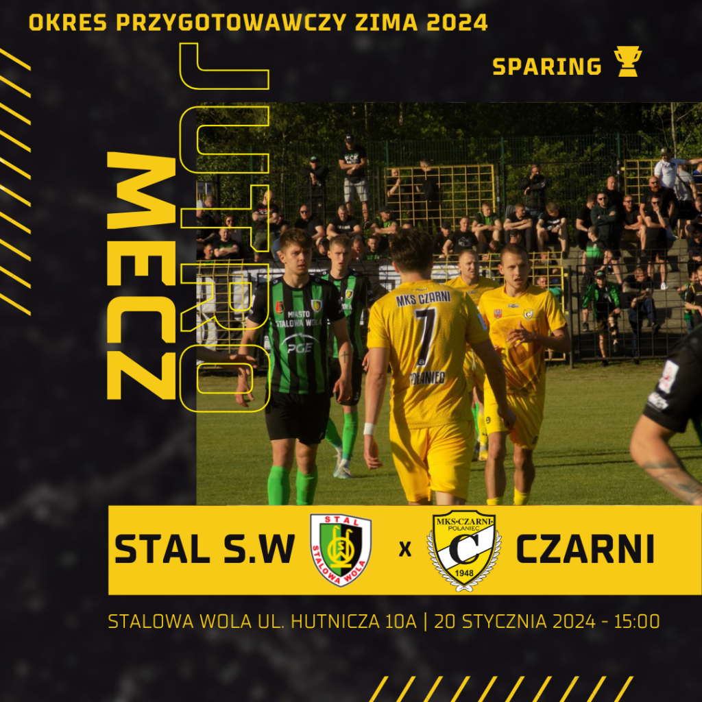 Już jutro o godzinie 15:00 w Stalowej Woli – drużyna Czarnych Połaniec prowadzona przez Łukasza Cabaja rozegra drugi mecz kontrolny, tym razem przeciwnikiem Połanieckiego zespołu będzie drugoligowa Stal Stalowa Wola PSA.