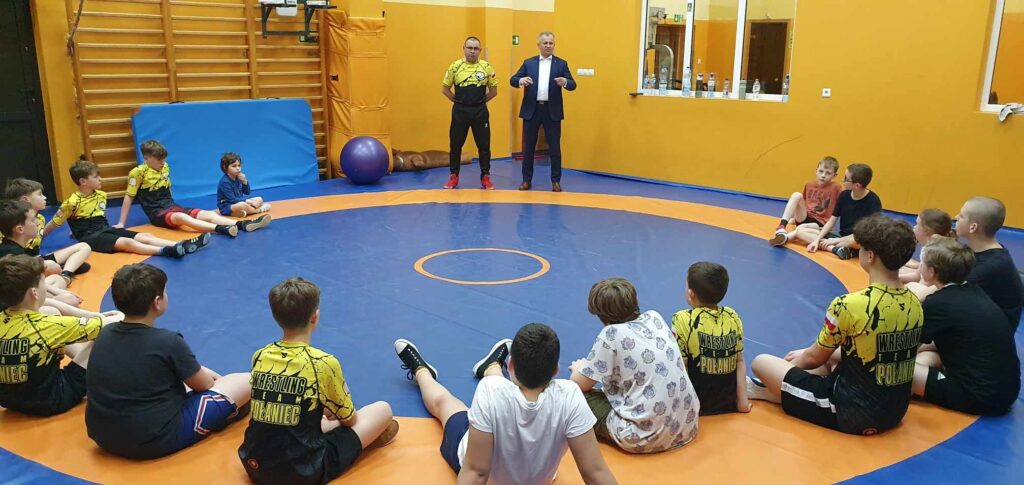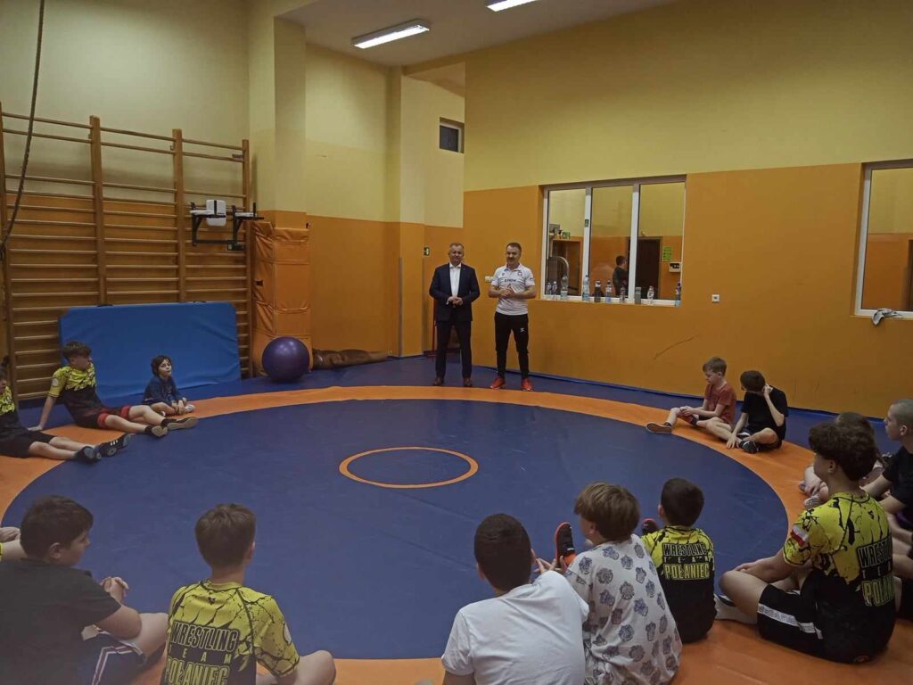 Miłym akcentem było również odwiedzenie przez Burmistrza Miasta i Gminy Połaniec, Pana Jacka Benedykta Nowaka, który zwracając się do ćwiczących dzieci i młodzieży podkreślił istotę wysiłku fizycznego i jego zbawienny wpływ na rozwój fizyczny, a nawet psychiczny człowieka. Podziękował również wszystkim za aktywne spędzanie ferii w sposób sportowy. Trenerzy, Tadeusz i Krzysztof, podziękowali Panu Burmistrzowi za wielokrotne osobiste zaangażowanie w proces szkolenia zawodników sekcji zapaśniczej MKS Czarni Połaniec, podkreślając fakt wsparcia finansowego tej dyscypliny. Bez tych środków nie moglibyśmy osiągnąć tak znaczących sportowych wyników, a nasza praca ograniczałaby się jedynie do lokalnych imprez sportowych.