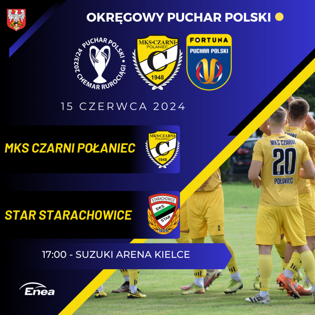 To już jutro o godzinie 17:00 na Suzuki Arena Kielce, Wielkie Piłkarskie święto nie tylko dla Świętokrzyskiej piłki, a w szczególności dla wszystkich kibiców Czarnych Połaniec oraz Staru Starachowice. Obie te drużyny, które wspomnieliśmy wcześniej powalczą o trofeum Okręgowego Pucharu Polski w tym sezonie tytularnym sponsorem tych rozgrywek jest Firma ,,Chemar-Rurociągi”.