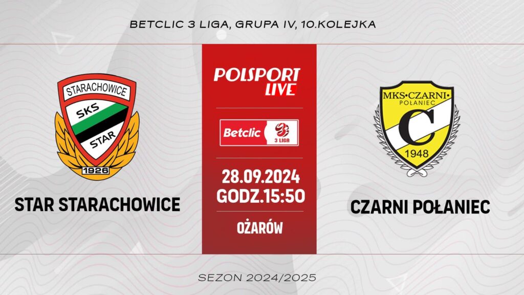 Pełna nazwa drużyny naszych jutrzejszych przeciwników to ,,Miejski Klub Sportowy – Star Starachowice.” – Ten Klub został założony 26 marca 1926 roku. Jeśli chodzi o barwy klubowe to są nimi kolory ,,zielono-czarne”. Prezesem Klubu ze Starachowic jest Pan – Mirosław Świrta, a tą funkcję sprawuję od 25 czerwca 2021. Natomiast szkoleniowcem – Staru Starachowice jest Pan, Przemysław Cecherz tą rolę pełni od 22 kwietnia 2024 roku. W miniony weekend Star przegrał w Krakowie z Wisłą II Kraków 3-1. Starachowiczanie po rozegraniu 9 meczów zajmują 5 miejsce mając w swoim dorobku punktowym 16 oczek.