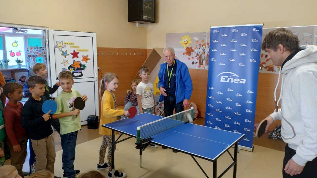 Podczas pokazu nie mogło zabraknąć logo ENEI – głównego sponsora Polskiego Związku Tenisa Stołowego, dzięki któremu Polacy osiągają w tej dyscyplinie spore sukcesy na arenach międzynarodowych, szczególnie w kategoriach młodzieżowych.