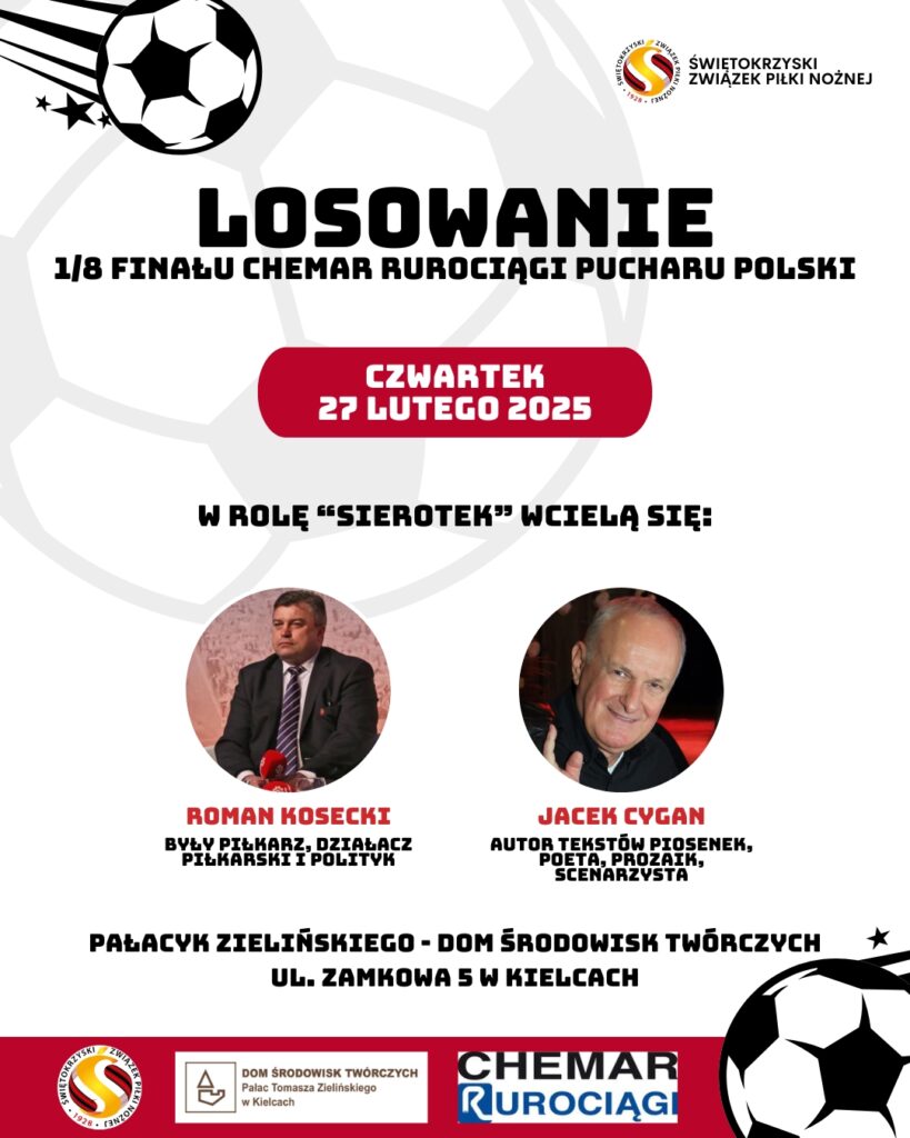 Świętokrzyski Związek Piłki Nożnej wyznaczył termin losowanie 1/8 finału Okręgowego Pucharu Polski. Losowanie odbędzie się 27 lutego o godzinie 17:00 w Kielcach w Pałacyku Zielińskiego. Gośćmi specjalnymi, którzy rozlosują pary będą Roman Kosecki – Były działacz piłkarski oraz polityk oraz Jacek Cygan – Autor tekstów piosenek, poeta, prozaik i scenarzysta.