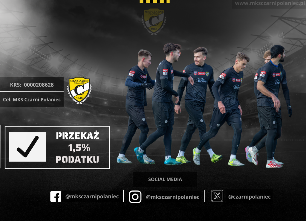 Powoli zbliża się czas rozliczeń z uzyskanych dochodów za miniony rok, jest to wyjątkowa okazja by wspomóż nasz Klub przekazując 1,5% podatku. | Aby to zrobić w deklaracji wpisz organizacja: MKS Czarni Połaniec w polu KRS uzupełnij ten nr. 0000208628. – Każde przekazanie 1,5% jest nieocenionym wsparciem dla Klubu za, które bardzo dziękujemy!