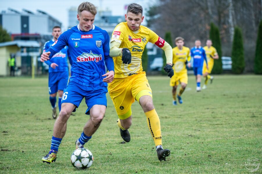 Na drugą połowę bardzo zmotywowani wyszli zawodnicy Sandecji Nowy Sącz, którzy od 46 minuty prezentowali bardzo wysoki pressing. W 48 minucie szansa przed przyjezdnymi, mocny strzał Rafała Wolsztyńskiego z prawej strony pola karnego, lecz nasz bramkarz pewnie broni. W 49 minucie zamieszanie w naszym polu karnym, lecz finalnie z linii bramkowej futbolówkę wybija nasz niezawodny Kapitan – Damian Bawor. W 52 minucie fenomenalną interwencją popisał się Wiktor Kowal, a wszystko zaczęło się od pechowej interwencji naszego obrońcy Maksyma Kuczerenki. W 56 minucie Kacper Sadłocha uderza z dystansu, a futbolówka mija prawy słupek bramki strzeżonej przez Martina Polacka. W 61 minucie na strzał z dystansu zdecydował się Damian Bawor, lecz to uderzenie było bardzo słabe i nie zaskoczyło bramkarza gości. W 66 minucie pierwsza zmiana w drużynie gospodarzy – Na płycie boiska pojawił się Szymon Salamon, a murawę opuścił Krystian Kardyś.