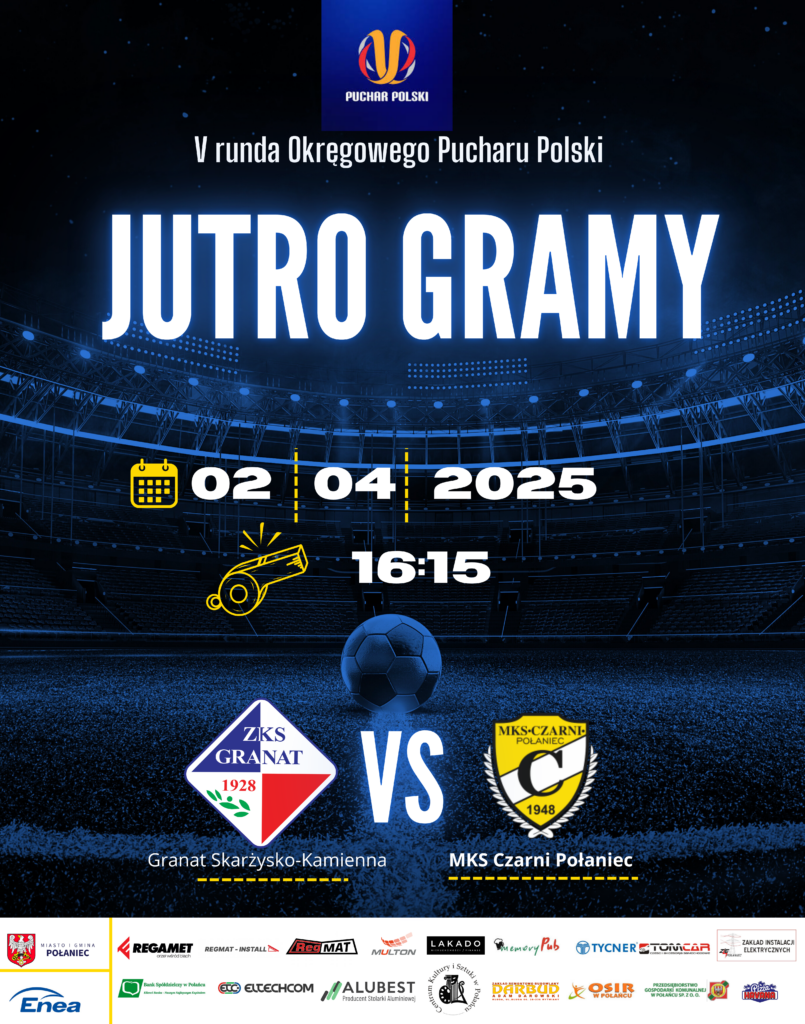 Już jutro o godzinie 16:15 w Rejowie – Czarni Połaniec zagrają mecz Okręgowego Pucharu Polski w ramach V rundy – Naszym przeciwnikiem będzie ZKS Granat Skarżysko-Kamienna. Transmisji z jutrzejszego meczu nie będzie! – A więc wszystkich fanów żółto-czarnych zapraszamy na stadion do Rejowa.