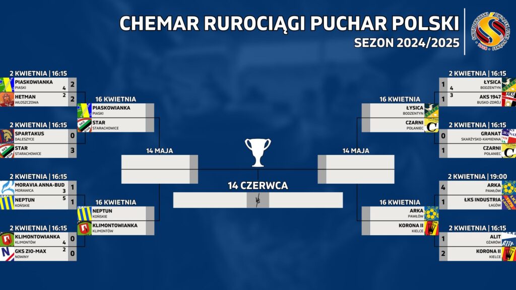 W następnej rundzie 16 kwietnia zagramy z Łysicą Bodzentyn o godzinie 16:15, – Mecz odbędzie się w Bodzentynie. W przypadku awansu do półfinału zagramy ze zwycięzcą pary Arka Pawłów – Korona II Kielce.