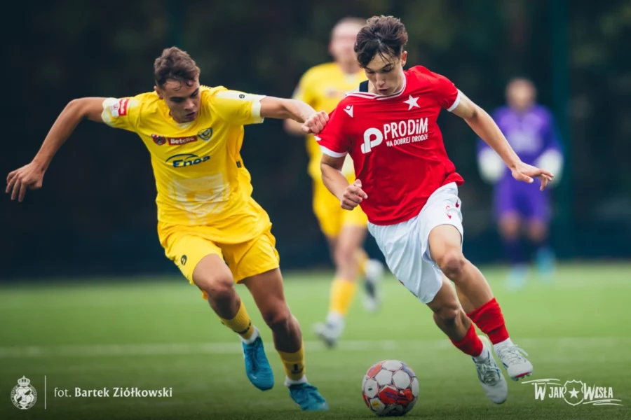 – Naszym jutrzejszym przeciwnikiem będzie zespół rezerw pierwszoligowej Wisły Kraków, drugi zespół Wisły Kraków został reaktywowany 6 sierpnia 2023 roku. Barwami klubowymi są kolory ,,Niebiesko-Biało-Czerwone”. Kadra zespołu opiera się również na zawodnikach występujących w pierwszej drużynie Wisły Kraków. | W ostatnim rozegranym meczu ligowym ,,Wiślacy” przegrali w Nowym Targu z Podhalem w rezultacie 4:2. | Zerkając w tabele to, ,,Biała Gwiazda” zajmuje 12 miejsce mając w swoim dorobku 35 punktów po rozegraniu 30 meczów.