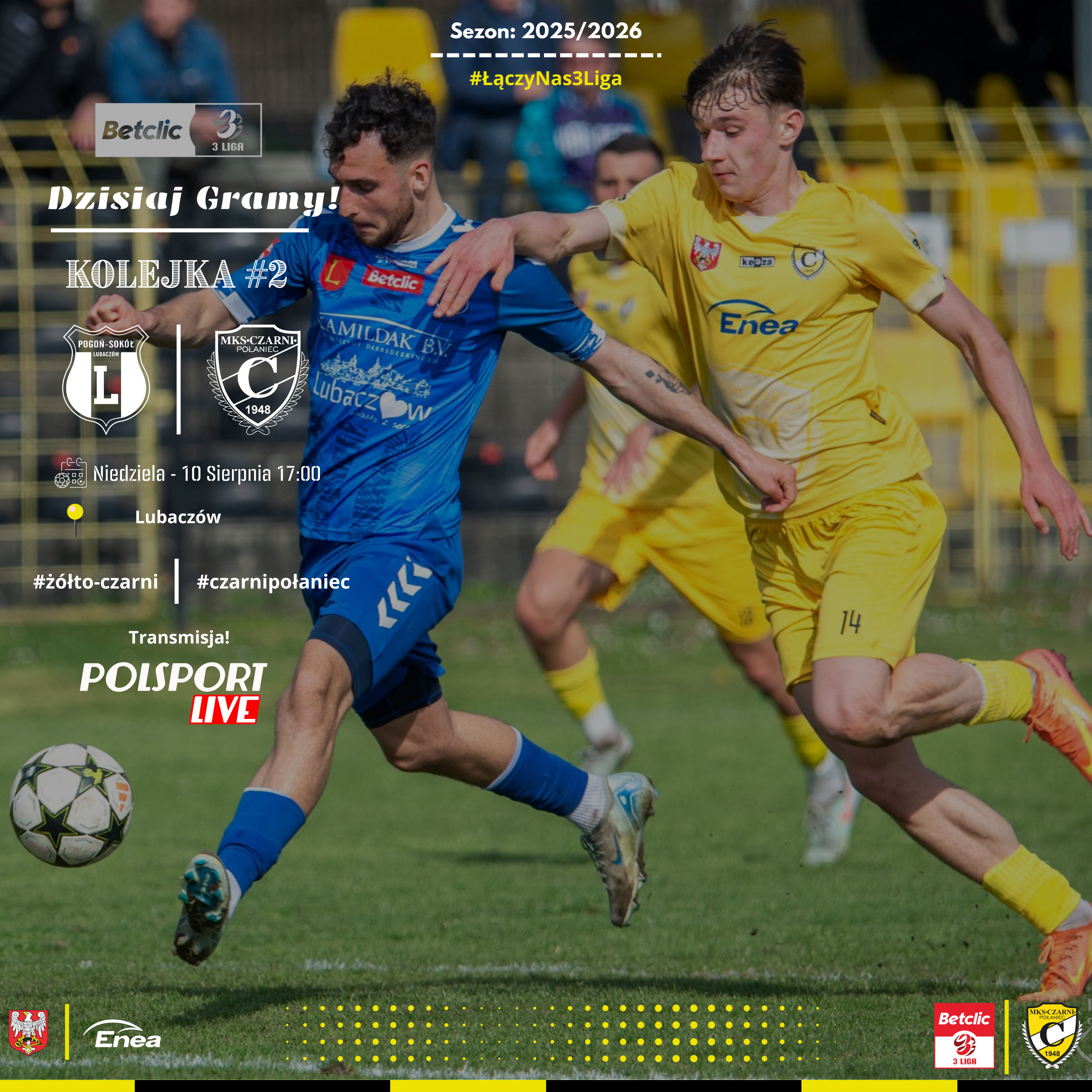 W niedziele 10 sierpnia o godzinie 17:00 w Lubaczowie zostanie zamknięta druga kolejka Betclic trzeciej ligi grupy – czwartej. W roli głównej wystąpią zespoły Pogoni-Sokół Lubaczów i MKS Czarni Połaniec. Spotkanie w roli sędziego głównego poprowadzi Łukasz Mucha z Lublina.