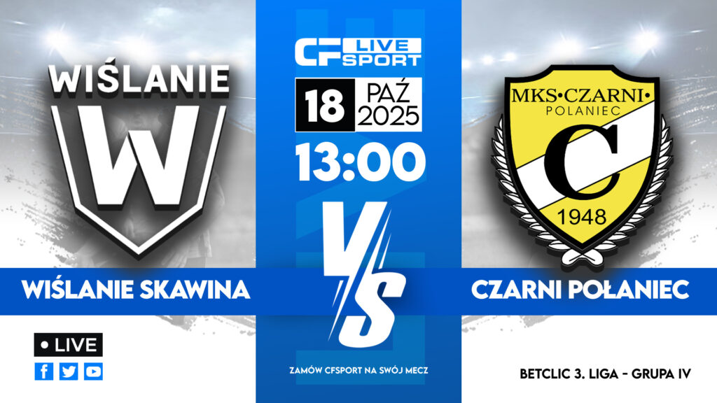 W sobotę 18 października czyli jutro o godzinie 13:00 – Czarni Połaniec rozegrają mecz ligowy na wyjeździe, tym razem zespół z Połańca pojedzie do małopolski – A konkretnie do Skawiny miejscowości położonej w powiecie Krakowskim. Rywalem Czarnych będą Wiślanie Master-Way Skawina. A ten mecz odbędzie się w ramach 13 kolejki na poziomie piłkarskiej Betclic trzeciej ligi.