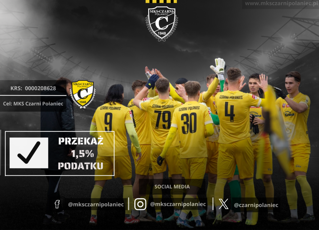 Co roku stajesz przed ważną decyzją, komu przekazać 1,5% swojego podatku. To mały gest z Twojej strony, ale dla nas w MKS Czarni Połaniec, to ogromne wsparcie i realna pomoc! Wierzymy, że najlepszą inwestycją jest rozwój lokalnej pasji i przyszłości młodych zawodników – Naszej dumy Połańca!