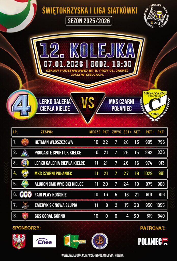 Nasz siatkarski zespół, MKS Czarni Połaniec💛🖤, staje przed wyzwaniem i szansą na umocnienie swojej pozycji w walce o najwyższe cele w sezonie 2025/2026. Rywalem będą gospodarze – LERKO GALERIA CIEPŁA Kielce.