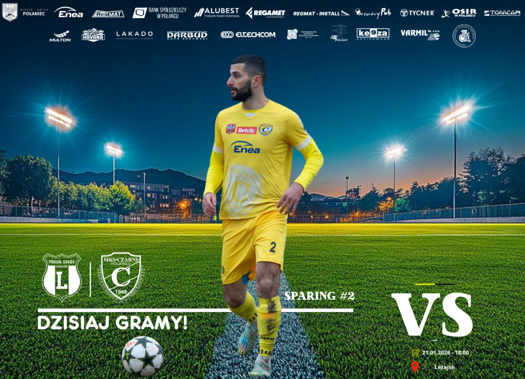 Przed piłkarzami MKS Czarni Połaniec kolejny etap zimowych przygotowań. Już dziś, 21 stycznia 2026 roku, podopieczni Sebastiana Ryguły zmierzą się w meczu kontrolnym z – Pogonią-Sokół Lubaczów. Pierwszy gwizdek na boisku w Leżajsku o godzinie 18:00.